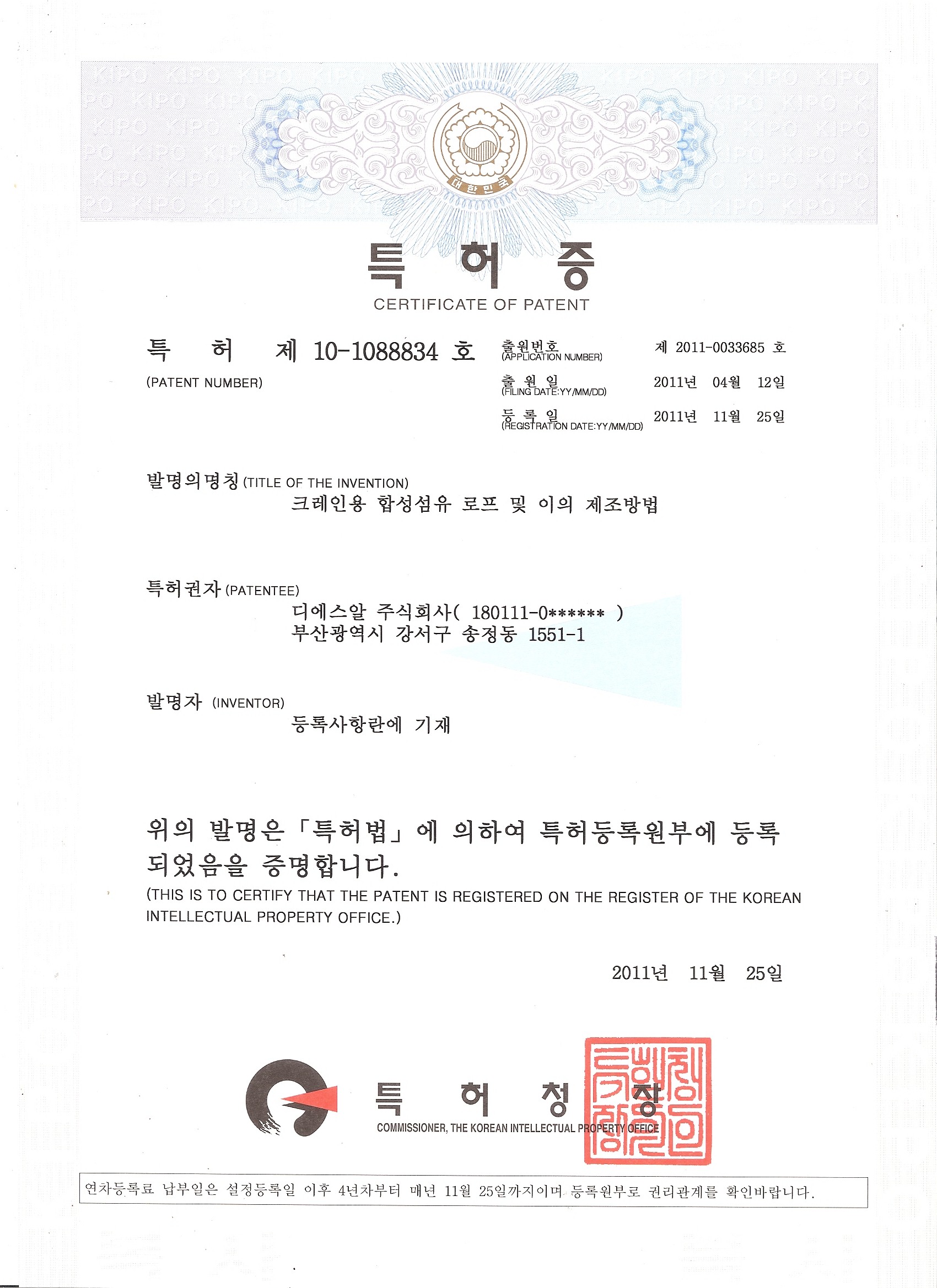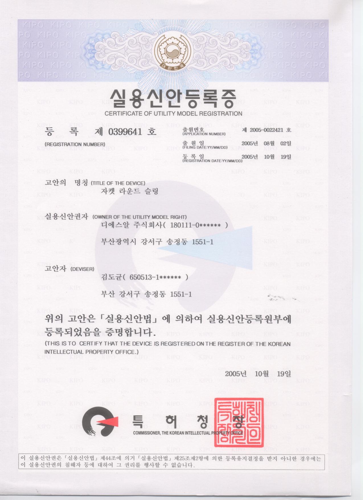 | 쟈켓이 부설된 라운드 슬링 | DSR(주) | 한국 | |